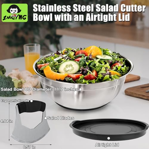 Salad Chopper Bowl – Stainless Steel Salad Chopping Bowl, Salad Chopper Bowl and Cutter with Lid, Chef Grade Salad Chopper Blade and Bowl, Mezzaluna Mincing Knife, Super-fast Salad Prep