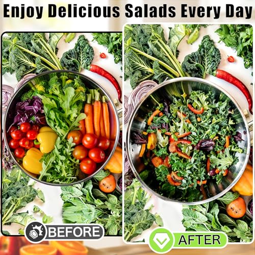 🥦【Stainless Steel Bowl wit Airtight Lid】The stainless steel construction is durable and ensures resistance to dents and rust. 🥦 Our stainless steel salad chopping bowl features an airtight lid that locks in freshness and flavor, perfect for preparing ahead or storing leftovers, ensuring your food stays fresh until you’re ready to enjoy it.
