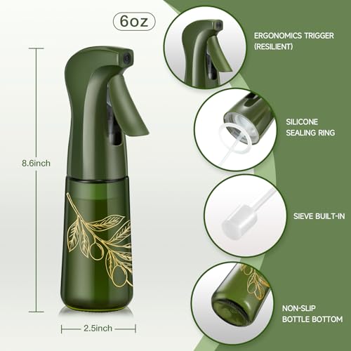 Glass Olive Oil Sprayer for Cooking, Oil Spray Dispenser Bottle for Kitchen (Dark Green, 6oz)