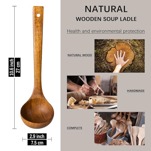 NATURALLY STUNNING: Each wooden ladle for soup showcases unique teak wood grains,making it a striking addition to your kitchen arsenal